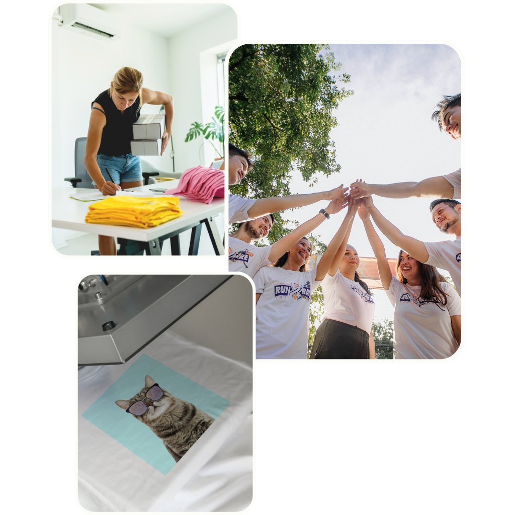 Produção print on demand para venda de t‑shirts, sem investimento inicial e sem mínimos obrigatórios. Crie e expanda a sua marca!
